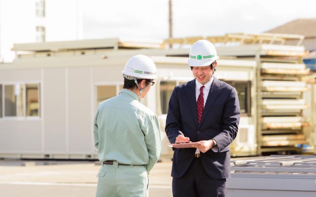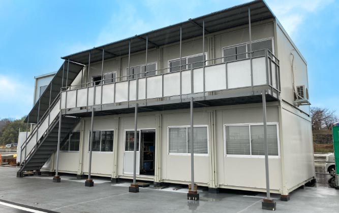 私たち⾼崎事務器株式会社は、仮設ユニットハウスやその他オフィス備品等のレンタルと販売を主な業務とする会社です。お客さまに⽀えられて半世紀以上。時代が変遷する中で、常に世の中のニーズに⽿を傾け、価値あるビジネスを創出してきました。その中で確⽴してきたユニットハウスのレンタル。今後もこのビジネスモデルを軸に、築き上げてきたお客さまとの信頼関係を深化させながら、利便性の向上につながる⾼品質なレンタルサービスを提供していきます。