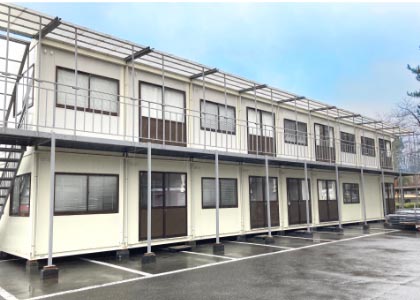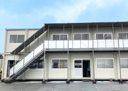 ユニットハウスは、コンパクトな1坪タイプからフレキシブルに拡張可能な連棟タイプ、2階建てまで多種多様にご⽤意しています。また、事務⽤品やOA機器、家電製品といったオフィスに必要な備品類も多数ラインナップ。お客さまの快適な仕事環境の実現に向けて、オールインワンでお⼿伝いをさせていただきます。